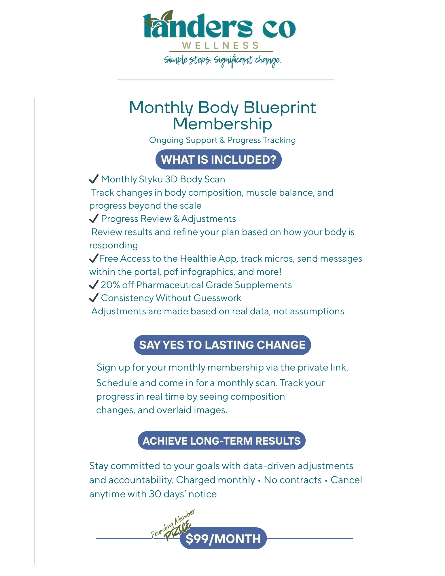 Body Blueprint Membership – Data-driven recommendations tailored to your goals, updated protocol, monthly scans, supplement discounts, and more!